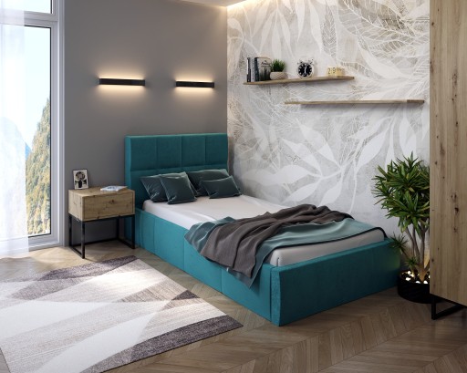 - na wizualizacjach łóżko wykonane jest w tkaninach: Jasmine 85 - turkus, Jasmine 81 - jasny szary, Jasmine 61 - pudrowy róż, Jasmine 96 - ciemny szary,