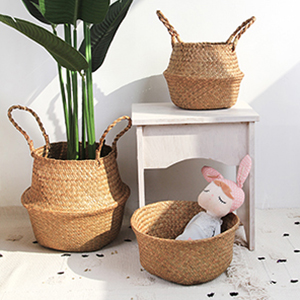КОРЗИНА С МОРСКОЙ ТРАВОЙ, КРЫШКА, ПЛЕТКА, СКЛАДНАЯ, НАТУРАЛЬНЫЕ РУЧКИ БОХО, 15 шт.