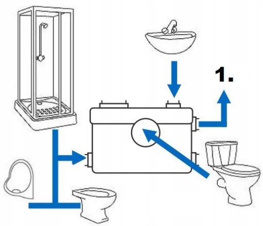 - Pompa może być używana również w kuchni lub pralni bez konieczności podłączania sedesu.