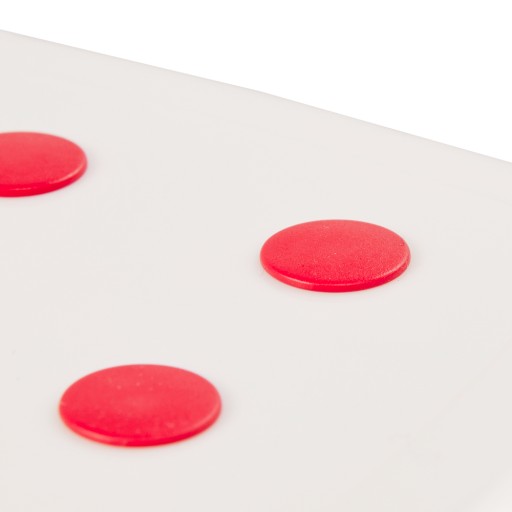 Charakterystyczną cechą produktu jest antypoślizgowa gumowa powierzchnia na wierzchu oraz przy nóżkach stołka, dzięki której dziecko czuje się stabilnie podczas wykonywania codziennych czynności.