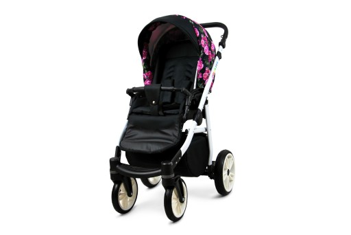 Color Lux 4w1 to wielofunkcyjny wózek z najnowszej kolekcji znanej, europejskiej marki BabyLux. Może być używany jako wózek głęboki, spacerowy oraz fotelik samochodowy z możliwością montażu na ramie wózka, a do tego posiada jeszcze bazę samochodową ISOFIX. Wykonany z najwyższej jakości tkanin typu Exclusive posiadających certyfikat OEKO-TEX STANDARD 100 w kolorze Bouquets Peony On Black, który nie tylko prezentuje się niezwykle elegancko, ale jest także bardzo odporny na blaknięcie oraz wilgoć. Ekskluzywne tkaniny zapewniają także podróżującemu dziecku idealną temperaturę oraz wilgotność powietrza niezależnie od panujących warunków atmosferycznych. Dla maksymalnej funkcjonalności oraz komfortu użytkowania wiele elementów wózka takich jak prowadnica, rączka do przenoszenia gondoli, barierka oraz podnóżek spacerówki zostało wykonane z wytrzymałej ekoskóry. Dzięki czemu produkt posłuży przez długi okres czasu.