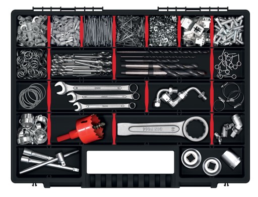 Idealne rozwiązanie na uporządkowanie i przechowywanie różnych drobnych przedmiotów. Bardzo pomocny w pracy instalatorów, mechaników, ale również dla majsterkowiczów, wędkarzy oraz Pań Domu.