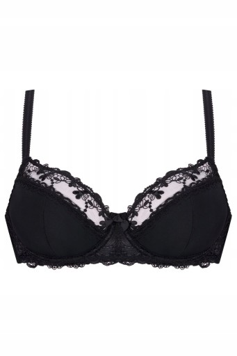 Biustonosz wykonany jest z pianki i elastycznej dzianiny w dolnej części miski oraz pięknego haftu w górnej części. Mostek obszyty koronką z kwiatowym motywem, podszyty stabilnym tiulem oraz plecy z elastycznej mikrofibry świetnie utrzymują biustonosz w odpowiedniej pozycji. Novato to biustonosz, który pokochały tysiące zadowolonych użytkowniczek.