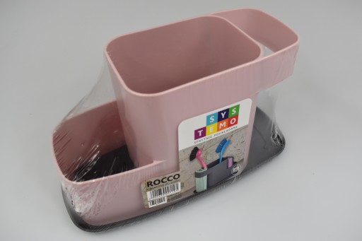 Organizer kuchenny SYSTEMOS pozwoli na zachowanie porządku wokół zlewu, sprawi, że wszystko będzie pod ręką i zwiększy higieniczność tego miejsca. Pojemnik wykonany tworzywa sztucznego zmieści np. małą butelkę płynu do naczyń i szczotkę, a na uchwycie wokół niego można zawiesić ściereczkę lub szczotke.