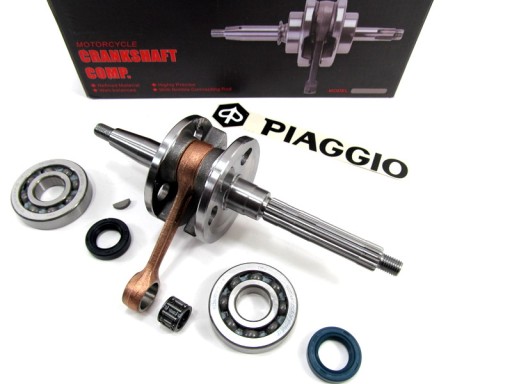 Przedmiotem oferty jest widoczny na zdjęciu wał korbowy przeznaczony do skuterów z dwusuwowym silnikiem Piaggio 50 na gaźniku chłodzonych cieczą lub powietrzem.