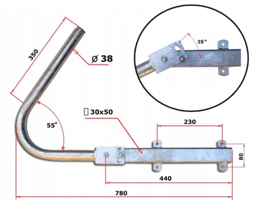 Stojak do krokwi pod rynnę dla anteny satelitarnej do montażu w domku jednorodzinnym, bliźniaku lub szeregowcu.