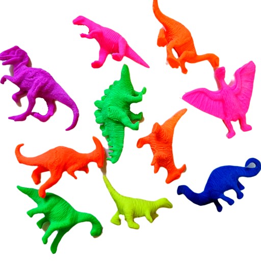 10 sztuk kolorowych dinozaurów.