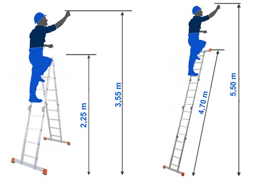 - ✅Wszechstronna, profesjonalna, przegubowa drabina aluminiowa do prac wewnątrz, jak i na zewnątrz.