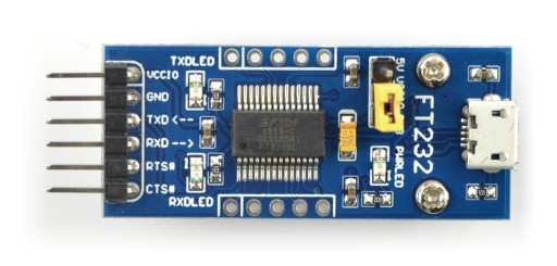 Konwerter, który umożliwia komunikację pomiędzy interfejsami szeregowymi USB i UART. Pozwala na wymianę danych między komputerem a układami wykorzystującymi mikrokontrolery. Moduł oparty na układzie FT232RL. W systemie operacyjnym widoczny jako wirtualny port COM. Posiada złącze microUSB.