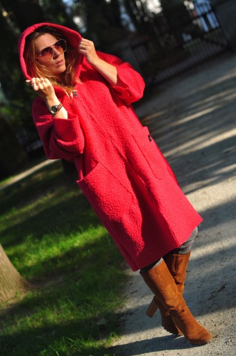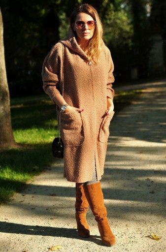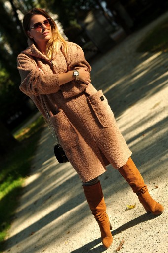 - materiał: poliester tkany elastanem, bukla (baranek, sztuczna wełna buklowa);