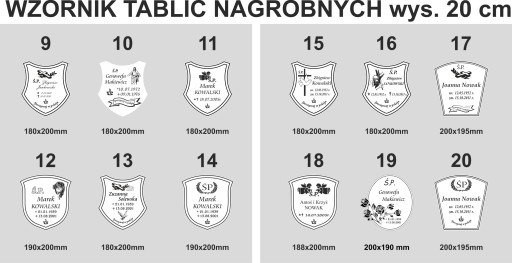 Cena dotyczy 20 cm wysokości i szerokości zależnej od wybranego wzoru (wzornik poniżej).