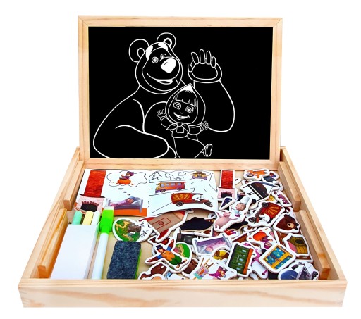 TABLICA MAGNETYCZNA EDUKACYJNA DREWNIANA WIELOFUNKCYJNA MASZA I NIEDŹWIEDŹ