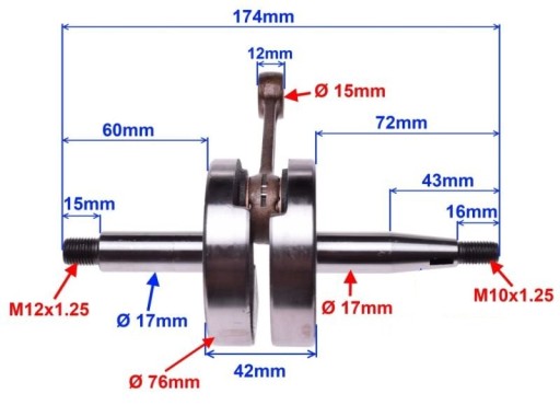 Dostarczany wraz z łożyskiem korbowodu 12x15x15 oraz dwoma łożyskami SKF C3 i dwoma uszczelniaczami.