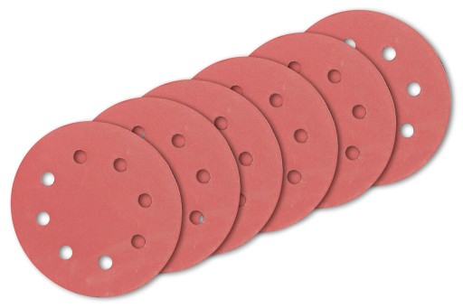 Mocowanie tarcz szlifierskich o średnicy 180mm odbywa się za pomocą rzepów. W zestawie otrzymują Państwo 6 papierowych tarczy o różnych granulacjach: