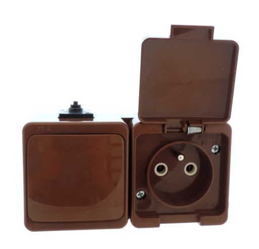 ГЕРМЕТИЧНАЯ РОЗЕТКА НАВЕРХНЕГО МОНТАЖА x1 КОРИЧНЕВАЯ + ВЫКЛЮЧАТЕЛЬ