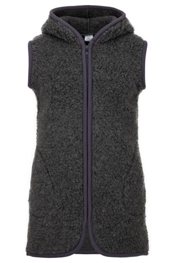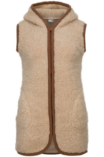 Długa kamizelka wełniana z kapturem zapinana na zamek - rozmiar S/M