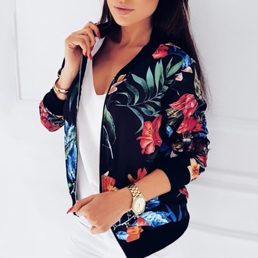 DAMSKA BLUZA W KWIATY BOMBERKA GRANATOWA