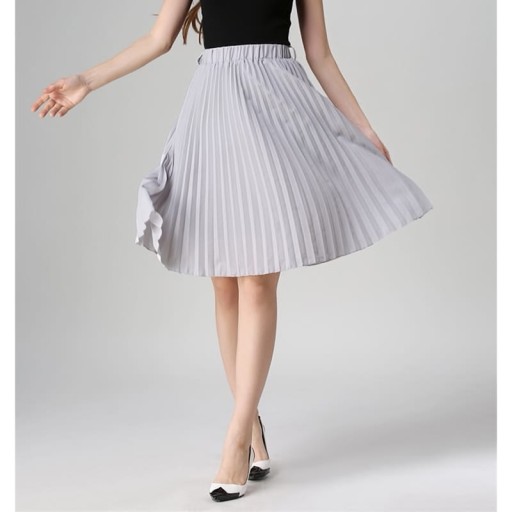 Romantyczna i elegancka spódnica plisowana o długości midi, wykonana z szyfonowego materiału, posiada podszewkę pod kolor.
