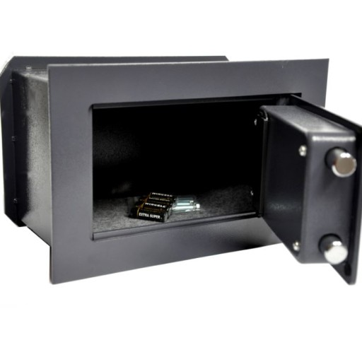 - Sejf ścienny do wmurowania wyposażony jest w zamek elektroniczny oraz mechaniczny (kluczowy). Dodatkowo sejf posiada zamek awaryjny (2 klucze do otwierania awaryjnego).