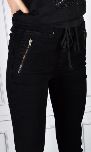 - Elastyczny materiał podkreśla kobiecą sylwetkę. Spodnie są dopasowane, rozciągają się