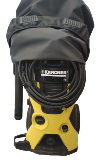 Pokrowiec na myjkę ciśnieniową karcher k5 uszyty z tkaniny wodoodpornej codura 600/600 w kolorze czarnym.