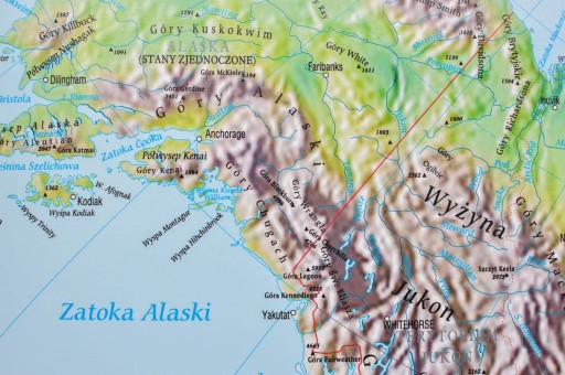Ścienna, fizyczna mapa szkolna przedstawiająca ukształtowanie powierzchni Ameryki Północnej i Środkowej w skali 1:7 480 000. W panelu bocznym znajdują się dodatkowe informacje i ciekawostki związane z geografią kontynentu północnoamerykańskiego. W osobnym kartonie znajduje się mapa Alaski i Aleutów (skala 1:5 700 000).