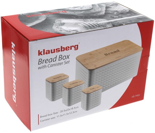 Stylowy i nowoczesny pojemnik na chleb z pokrywą i trzema pojemnikami .