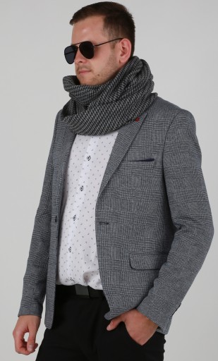 Efektowny komin męski wykonany z wysokiej jakości dzianiny. Najmodniejszy fason komina oraz estetyka wykonania dodadzą oryginalności zarówno klasycznemu ubraniu, jak również eleganckim i codziennym zestawom.