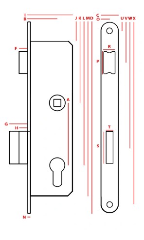 -Puszka zamka, kaseta wymiary szerokość 26mm, wysokość 224,5mm, głębokość 42mm