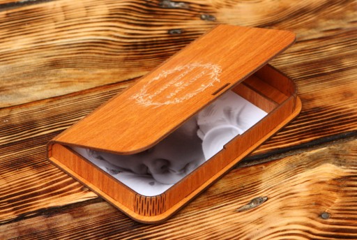 Wieczko pudełka jest trwale wygrawerowane techniką laserową z dbałością o najmniejsze detale. Można je dowolnie spersonalizować według Państwa życzenia.
