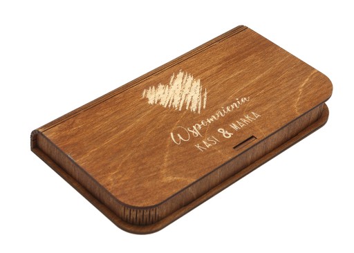 Pudełko jest bardzo starannie wykonane z drewna brzozowego. Jest to wspaniała pamiątka, którą z radością można pochwalić się znajomym i rodzinie. W pudełku poza zdjęciami znajduje się miejsce na pendrive.