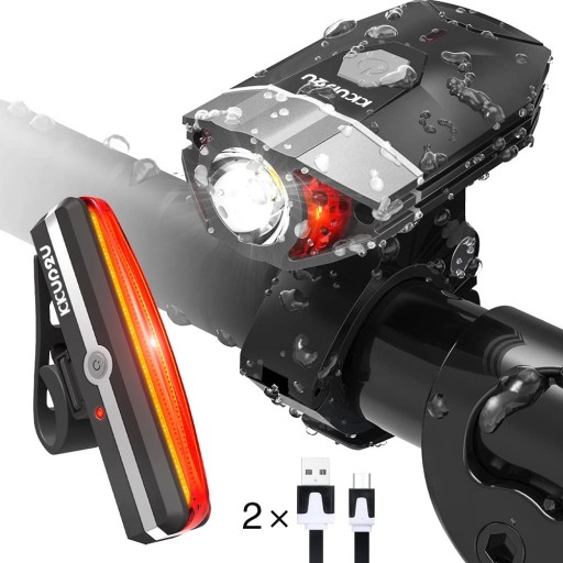 KKUP2U Oświetlenie rowerowe LED Zestaw świateł rowerowych, światła rowerowe Akumulatorowe światła rowerowe USB 300 lumenów Światło rowerowe, regulowana jasność Reflektor i tylne światło, wodoodporność IP65