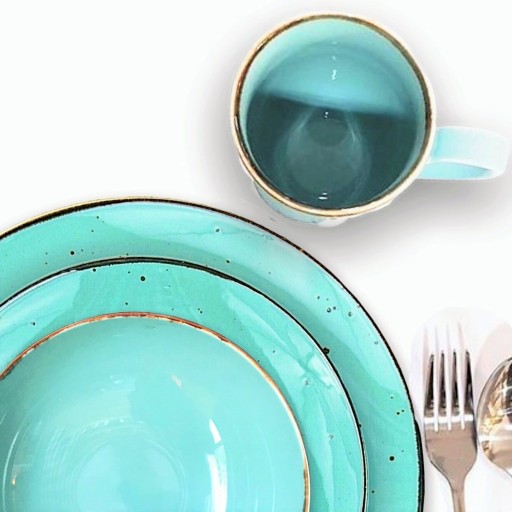 Serwis skomponowany przez stylistkę wnętrz. W najmodniejszym, pięknym kolorze tiffany turkusowym, idealny do nowoczesnych i klasycznych wnętrz.