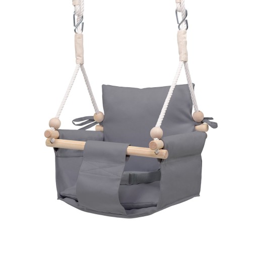 MAMOI® Huśtawka dla dzieci do domu i ogrodu w stylu skandynawskim z poduszkami i koralami w kolorze - SZARYM ORAZ PASEM W ODCIENIU SZARYM.