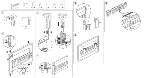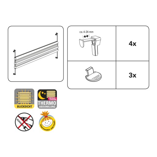 - 4 regulowane plastikowe zaciski do łatwego mocowania do skrzydła okiennego ( zakres regulacji ok. 3-22 mm),
