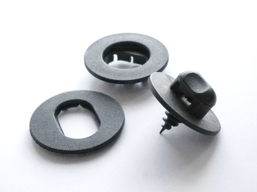 Uniwersalne, owalne mocowania do dywaników samochodowych. Stopery zabezpieczają przed przesuwaniem się dywanika w czasie jazdy samochodem.