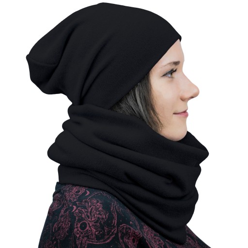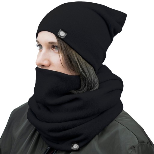ZESTAW CZAPKA KOMIN DAMSKI CZARNY ROZMIAR S