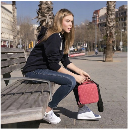 Torba termiczna z 4 pojemnikami - Czerwona w kropki Półsztywna Casual TATAY