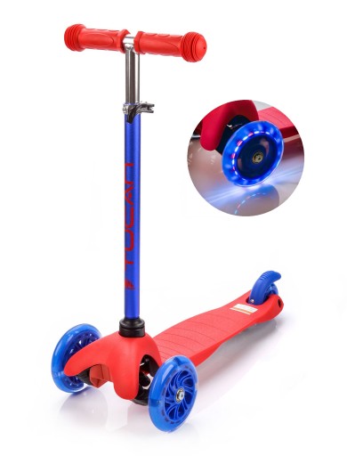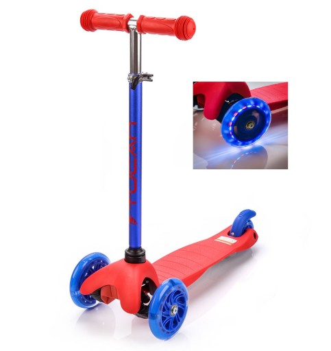 HULAJNOGA TRÓJKOŁOWA Z KÓŁKAMI LED METEOR Z ANODYZOWANĄ KIEROWNICĄ CZERWONO NIEBIESKA