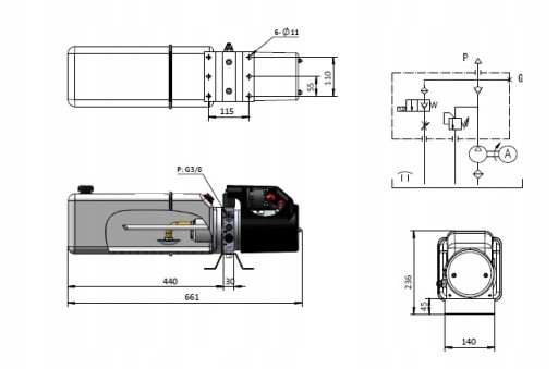 Agregat Hydrauliczny zasilany napięciem 12V.