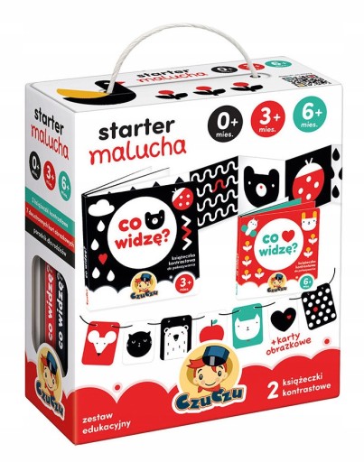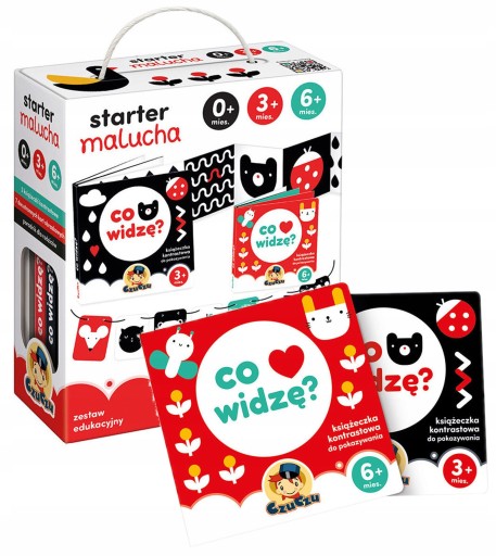 Nigdy nie jest za wcześnie na wspólne odkrywanie świata! Starter malucha to zestaw kontrastowych kart i książeczek do pokazywania, który sprawdzi się w pierwszym roku życia dziecka. Do zestawu dołączyliśmy poradnik z informacjami na temat rozwoju wzroku i pomysłami na wspólną zabawę. To świetny pomysł na prezent dla rodziców niemowląt.