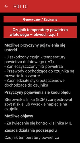 - odczyt przyczyny świecenia się kontrolki Check Engine/MIL