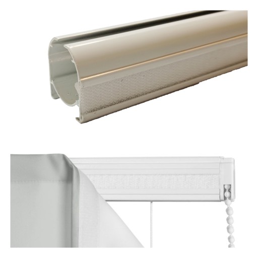 - szyna aluminiowa malowana proszkowo na kolor biały z fabrycznie zamontowanym rzepem twardym z bębnami TWIST (5 szt.) przełożenie 1:4 złożona na wymiar