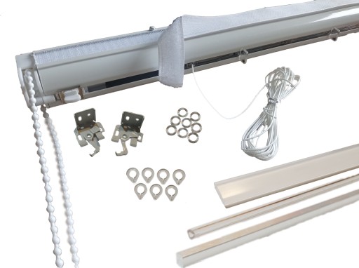 Mechanizmy rolety rzymskiej skręcane na podany wymiar oraz akcesoria dodatkowe dostępne na innych naszych aukcjach.