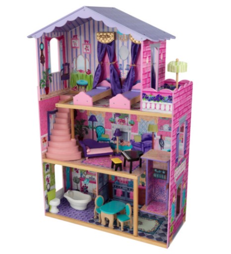 ДЕРЕВЯННЫЙ ЭЛЕГАНТНЫЙ КУКОЛЬНЫЙ ДОМ НОВЫЙ С МЕБЕЛЬЮ