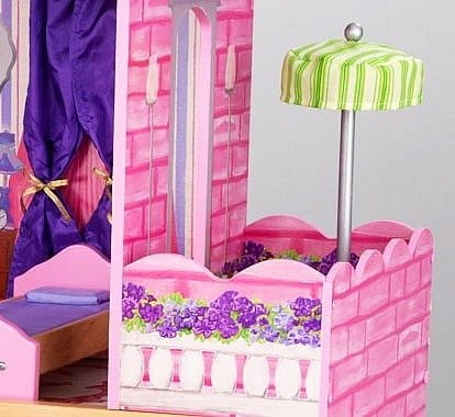 DREWNIANY ELEGANCKI DOMEK DLA LALEK Z MEBLAMI I BALKONEM