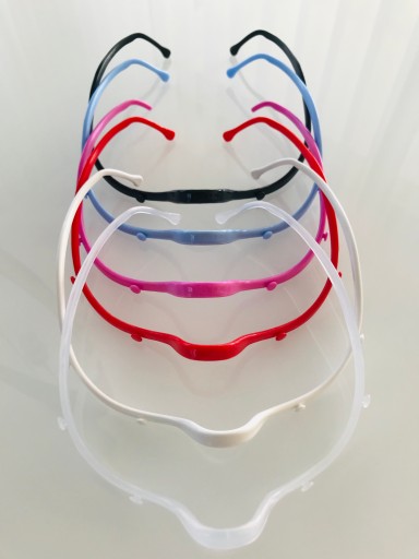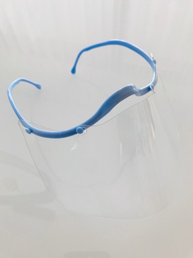 Przyłbica wysyłana jest w dwóch częściach do samodzielnego montażu. Sam montaż jest banalnie prosty – wystarczy nałożyć otwory w szybce na kołeczki znajdujące się na oprawce i gotowe. Zajmuje to dosłownie kilkanaście sekund.