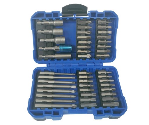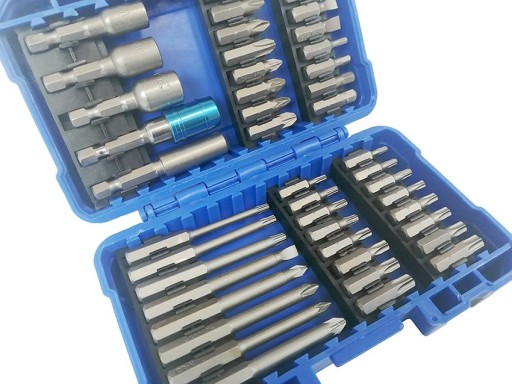 Różne rodzaje bitów pozwolą na pracę z wieloma rodzajami wkrętów. Wszystko w etui co pozwala uniknąć zgubienia bitu.