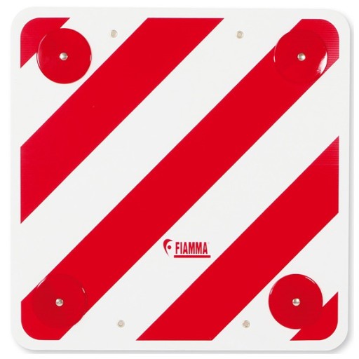 Tablica jest wykonana z lekkiego tworzywa, z 4 odblaskami. Pasuje do każdego pokrowca rowerowego Fiamma.
