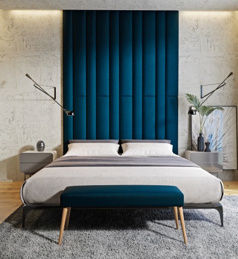 Panel z większą ilością pianki jest bardziej wypukły i miękki, opcja jak najbardziej polecana, jeśli panele mają służyć jako miękkie zagłowie za łóżkiem lub jako siedziska np. do wnęk.